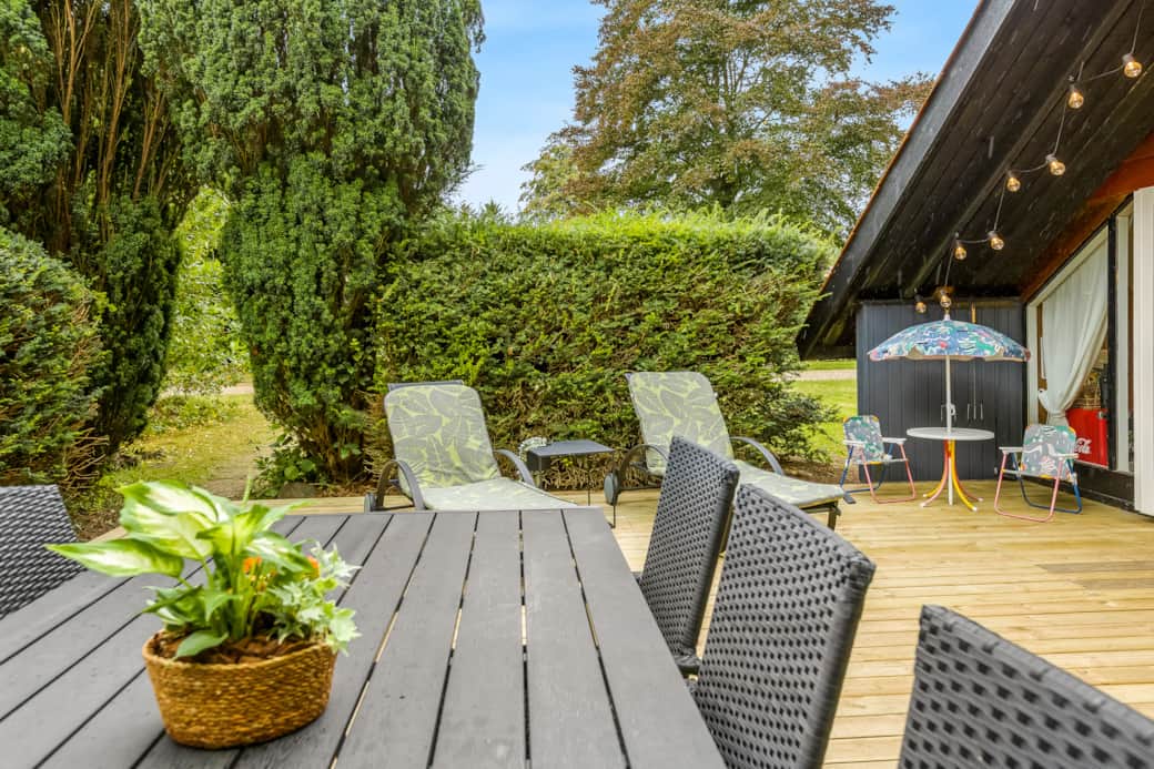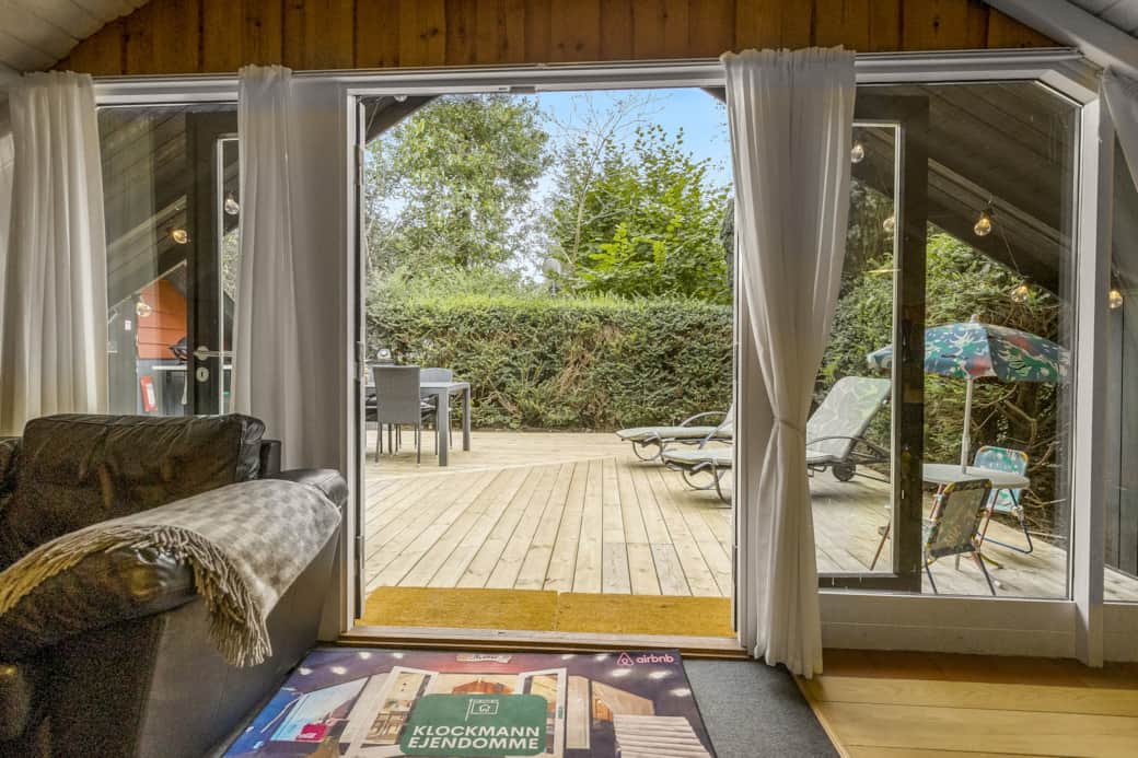 Udendørs kan du nyde den store træterrasse, hvor naturen tæt på får dig til at føle, at du er en del af skoven.